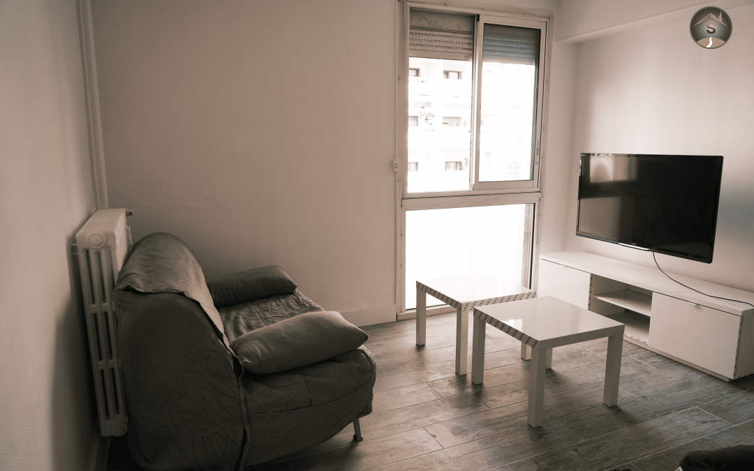 D’une surface d’environ 29 m², l’appartement se compose d’une agréable pièce de vie baignée de lumière, aménagée avec un meuble TV, une télévision et une table basse, offrant un espace convivial pour se détendre. La cuisine, séparée ou semi-ouverte selon l’agencement, est fonctionnelle et équipée notamment d’un four et d’un lave-linge, permettant une installation immédiate sans investissement supplémentaire en électroménager.